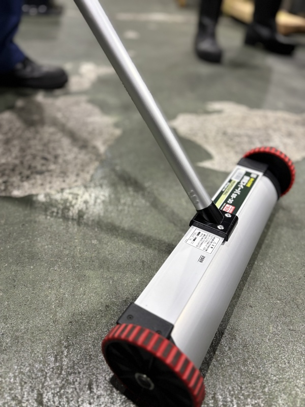 鉄屑スイーパーを購入しました。単発プレス加工と順送プレス加工は工場の床に鉄カスが散乱することがありますが、その鉄カスのせいで大切な製品にダゴンが付き大変な事態をまねきます。